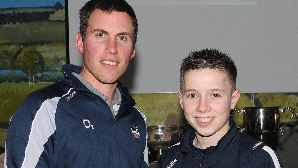 Luke Fahy receives his medal from Paddy Kelly at the Ballincollig Juvenile GAA medals presentation night in their club pavilion in 2013. Picture: David Keane
