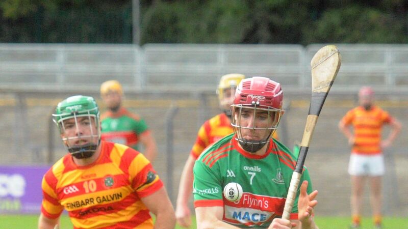 Tom Millerick of Fr O'Neills shooting goalwards against Newcestown in the 2020 Co-op SuperStores Cork SAHC semi-final. Picture: Denis Minihane