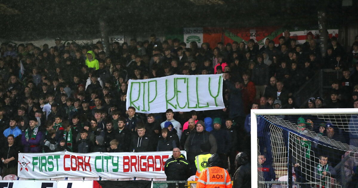 Cork City supporters hold up a banner in memory of the late Kelly Healy, wife of former Cork City player and manager Colin, and mother of player Arran, before the last game at Turner's Cross. Picture: Michael P Ryan/Sportsfile