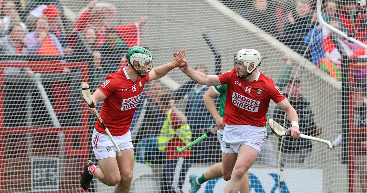 Cork’s Shane Kingston celebrates scoring a goal with Patrick Horgan against Limerick in 2022. Picture: INPHO/Bryan Keane