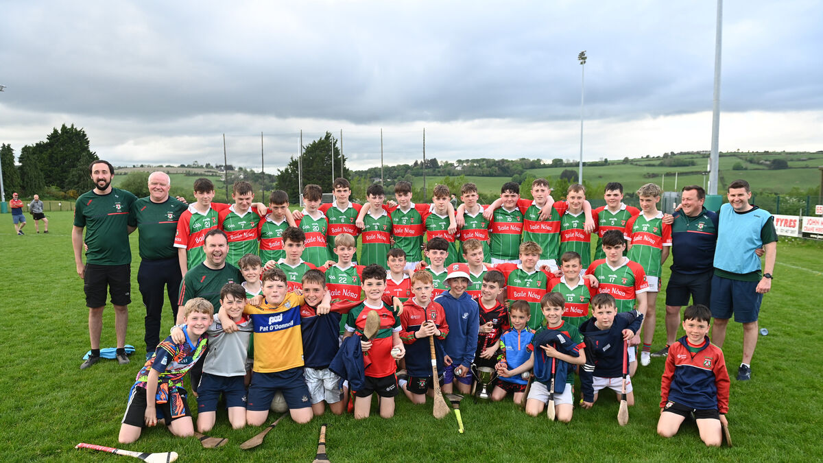 Ballinora players and management with young supporters after winning the Féile premier 2 hurling final. Picture: Larry Cummins
