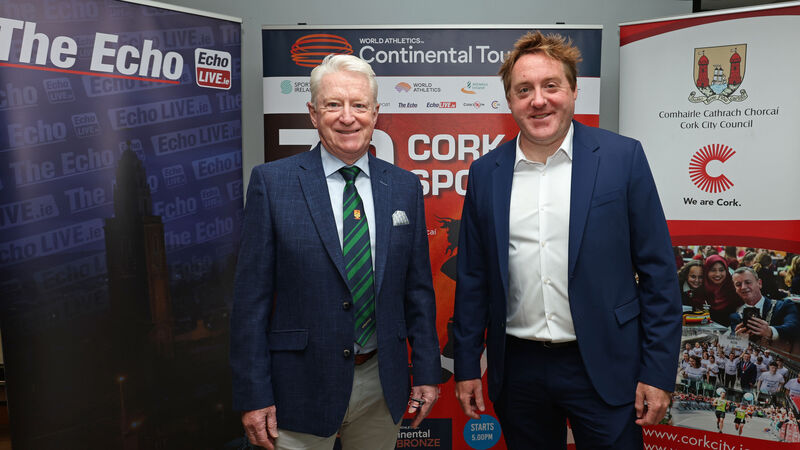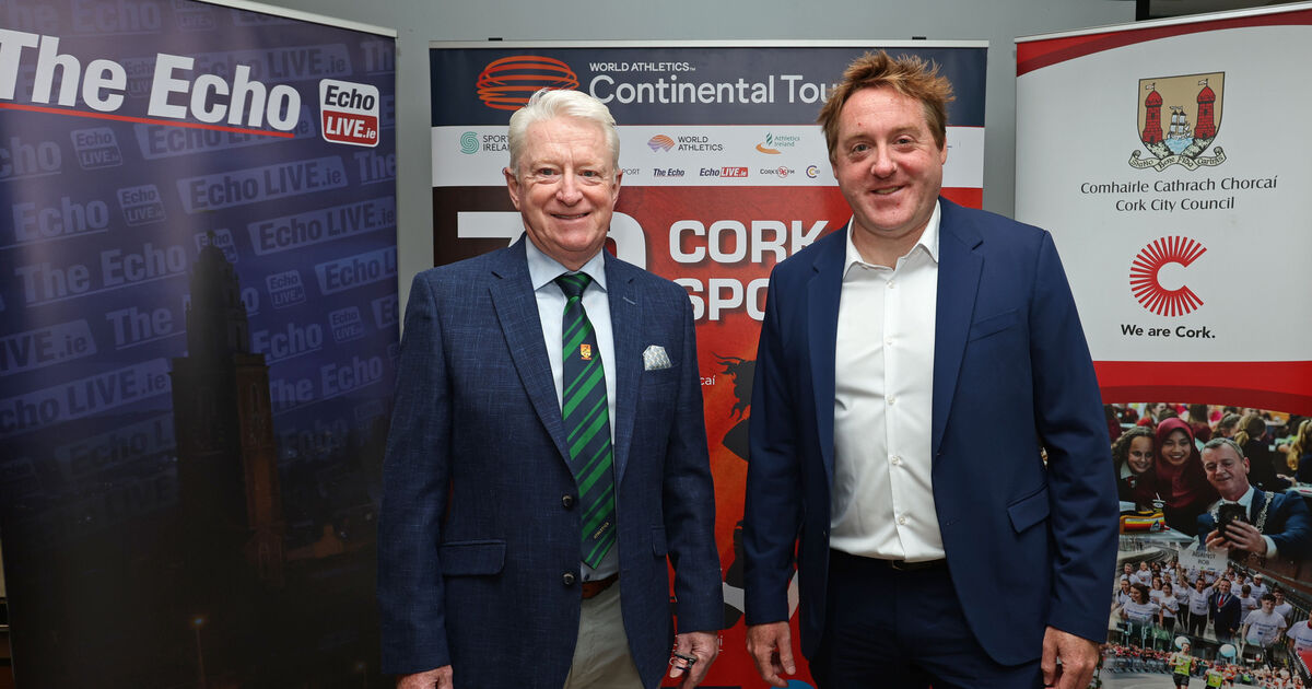 Joe Hartnett, Meet Director Cork City Sports and Patrick Gleeson, Cork ETB, at the launch of the 70th Cork City Sports, International Athletics Meet 2024,