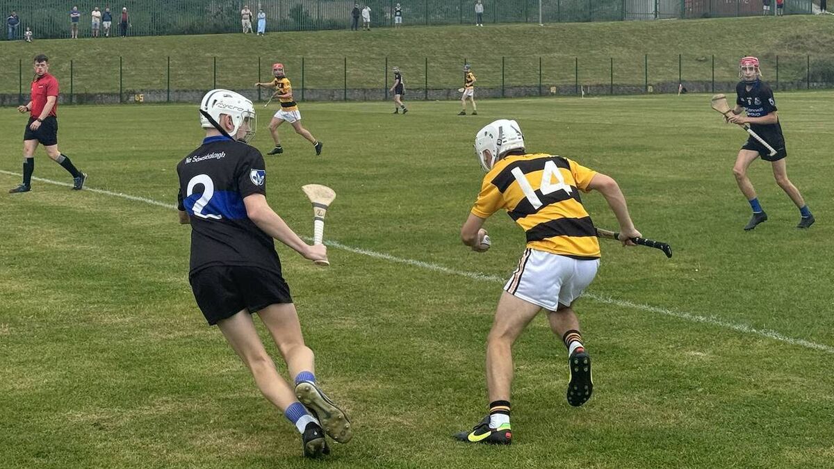 Na Piarsaigh's Sean O'Callaghan gets away from Sarsfields' Darragh Pomeroy during their P1 U16 Hurling Championship game in Na Piarsaigh.