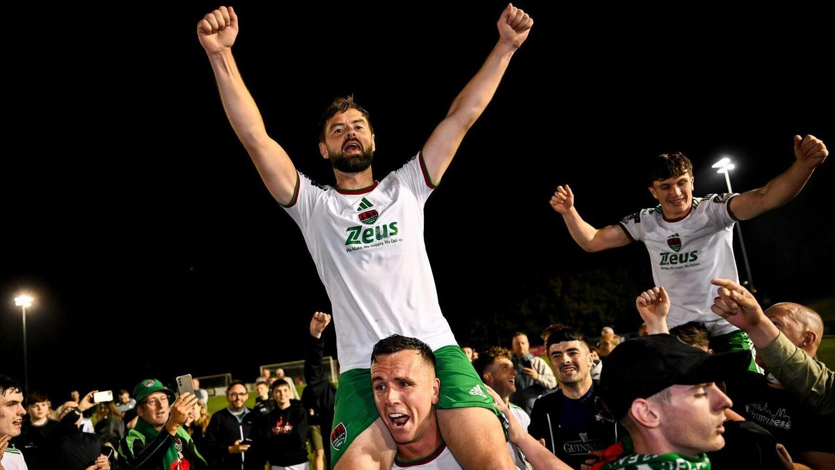 Cork City's Greg Bolger and Charlie Lyons celebrate promotion. Picture: David Fitzgerald/Sportsfile
