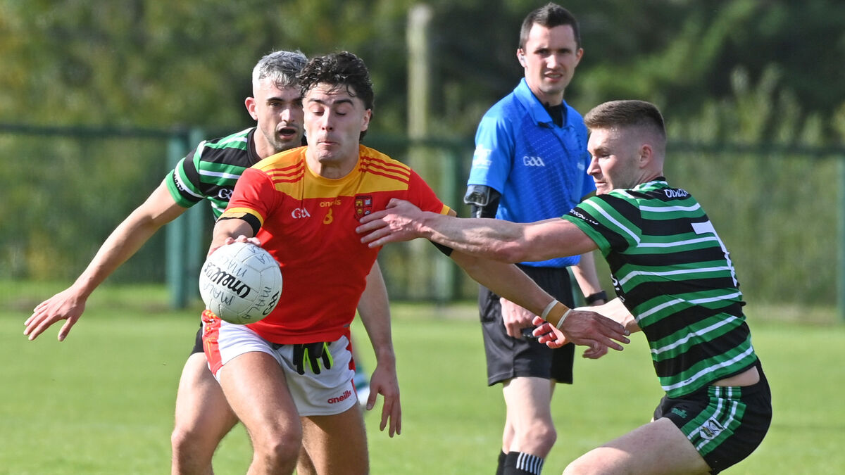 Mallow's Shane Merritt tussling with Douglas' Kevin Flahive and Conor Kingston. Picture: Eddie O'Hare