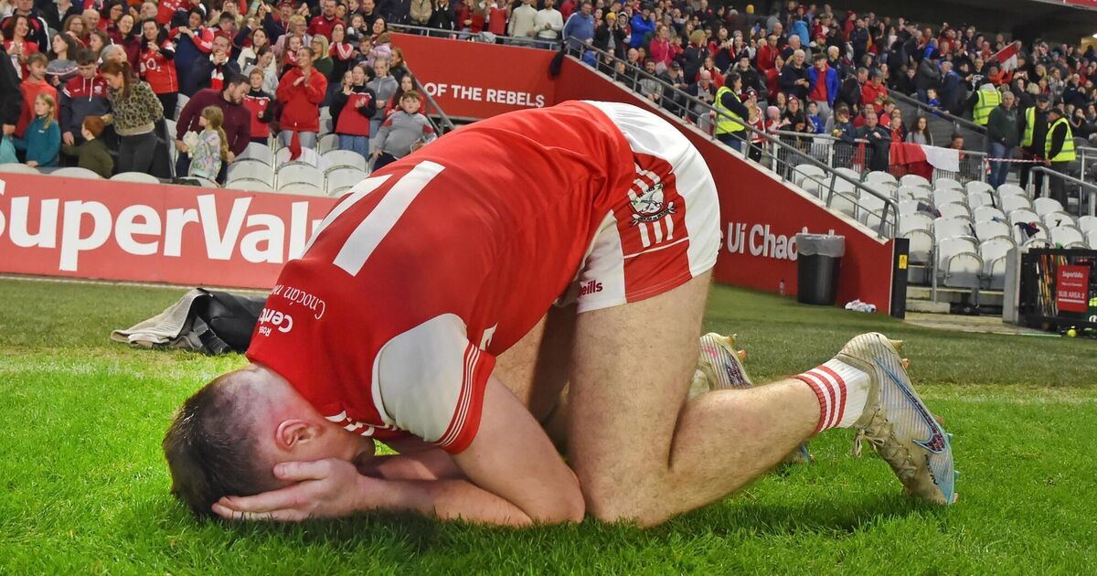 Watergrasshill captain Sean Desmond drops to his knees after defeating Carrigaline. Picture: Eddie O'Hare