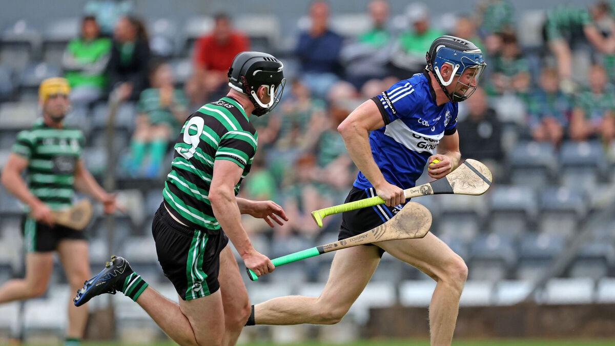 Cian Darcy, Sarsfields, gets past Joseph Harte, Douglas during the Co-Op Superstores Premier SHC. Picture: Jim Coughlan.