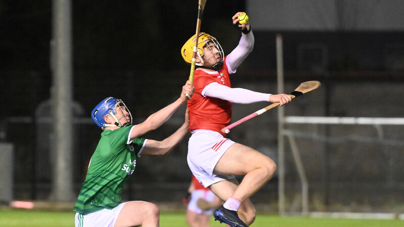 Castlemartyr's Billy McGann wins the sliotar from Ballincollig's Jack Lucey during Co-Op Superstores under 21 CHC swmi final at SuperValu Pairc Ui Chaoimh 4G. Picture: Eddie O'Hare