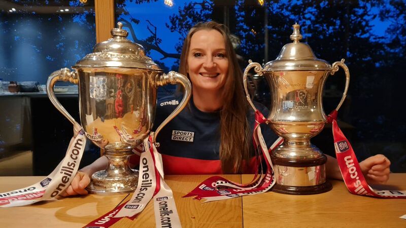 Jennifer Hayes pictured with the U20 All-Ireland and Munster trophies.