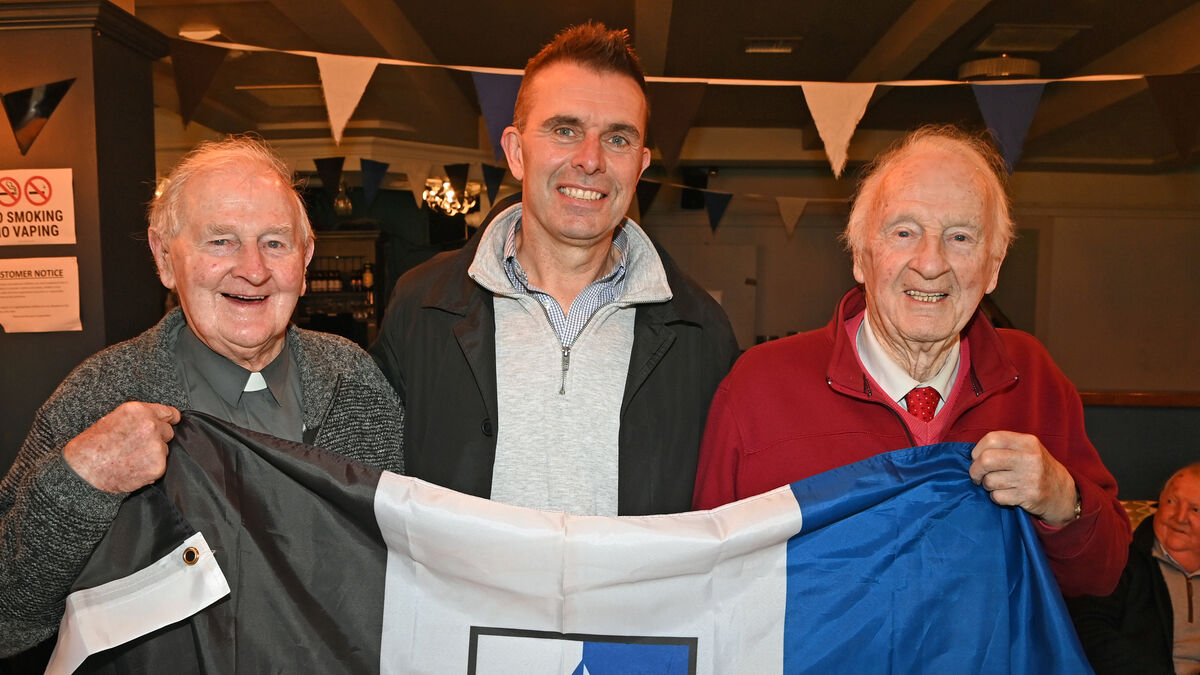 Sarsfields manager Johnny Crowley (centre) with Fr Martin Barry, a county SHC winner with the club in 1957, and Denis Hurley, who won in 1951 and 1957, before the AIB All-Ireland Club SHC final. Picture: Eddie O'Hare
