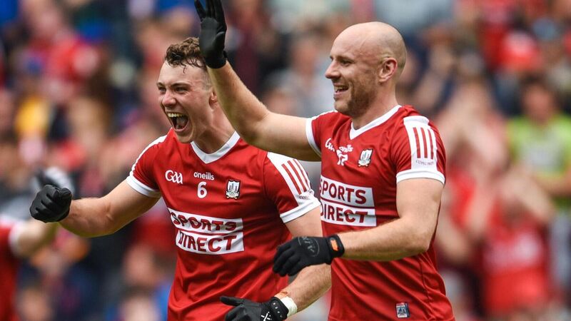 Cork's Daniel O’Mahony and Brian O’Driscoll celebrate after beating Roscommon in 2023. Picture: Tom Beary/Sportsfile