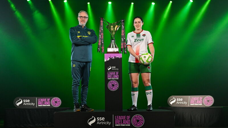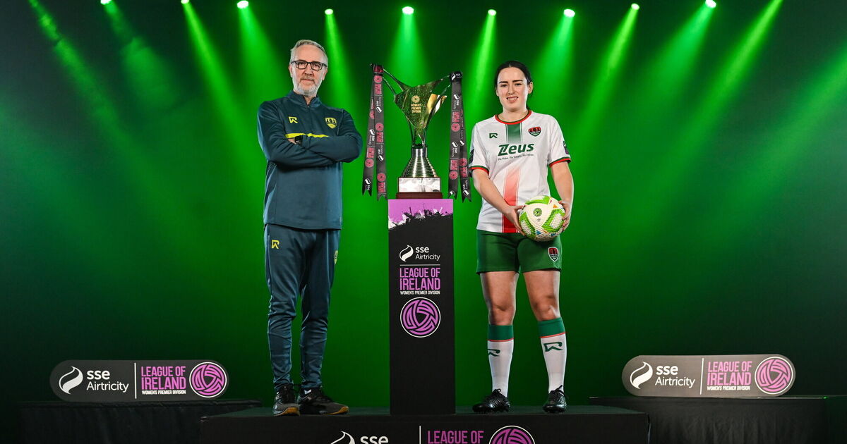 Cork City manager Frank Kelleher and Ciara McNamara of Cork City during the SSE Airtricity Men’s Premier Division, SSE Airtricity Men’s First Division and SSE Airtricity Women’s Premier Division Launch 2025 at Mansion House in Dublin. Photo by Stephen McCarthy/Sportsfile