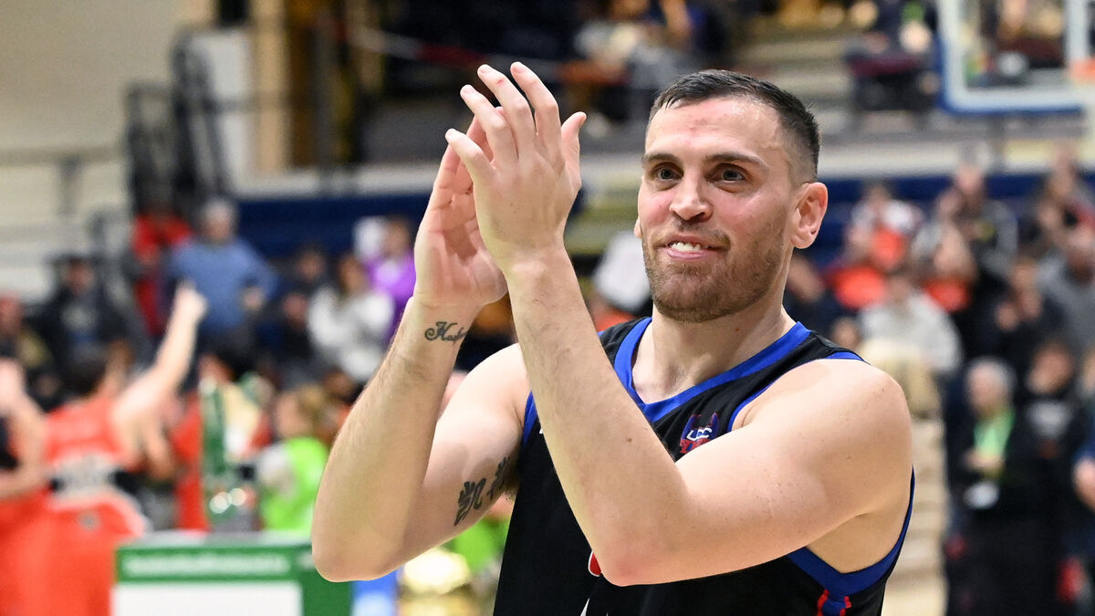 UCC Demons Kyle Hosford applauds the supporters after the defeat to Killester in the Pat Duffy national cup final at the National Basketball Arena, Tallaght. Picture: Eddie O'Hare