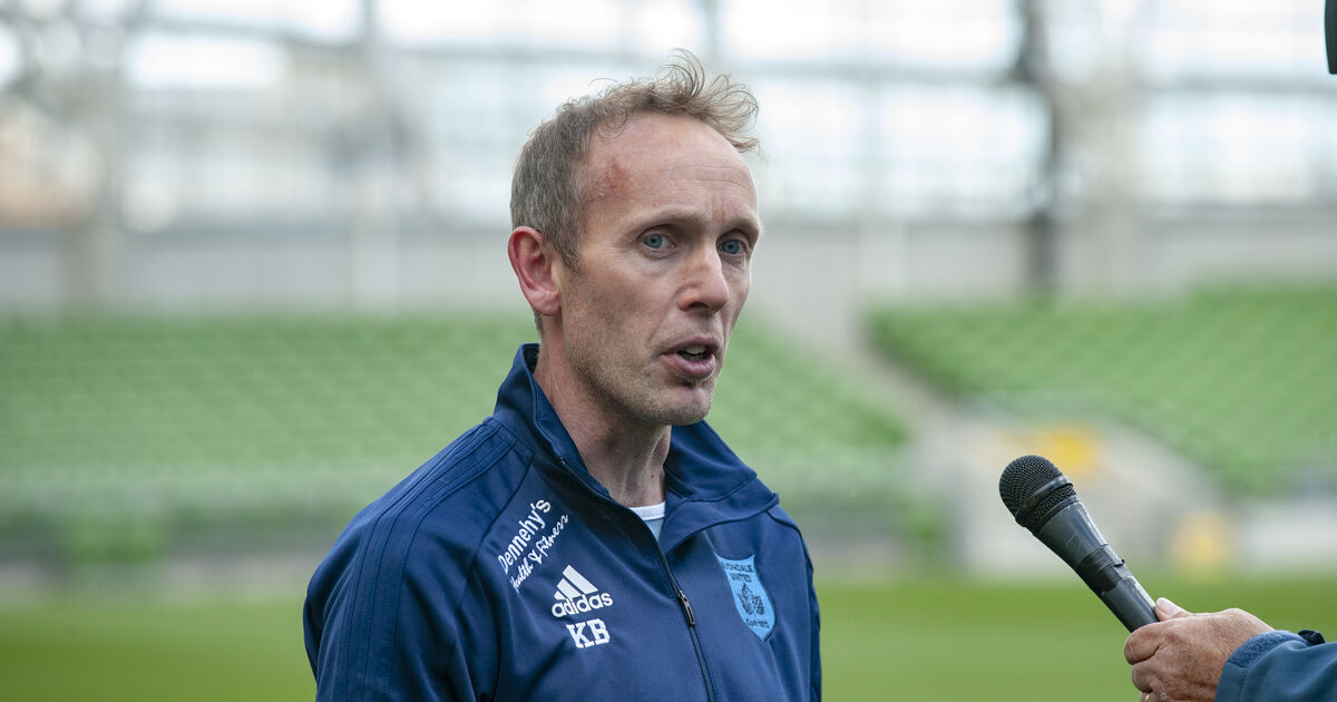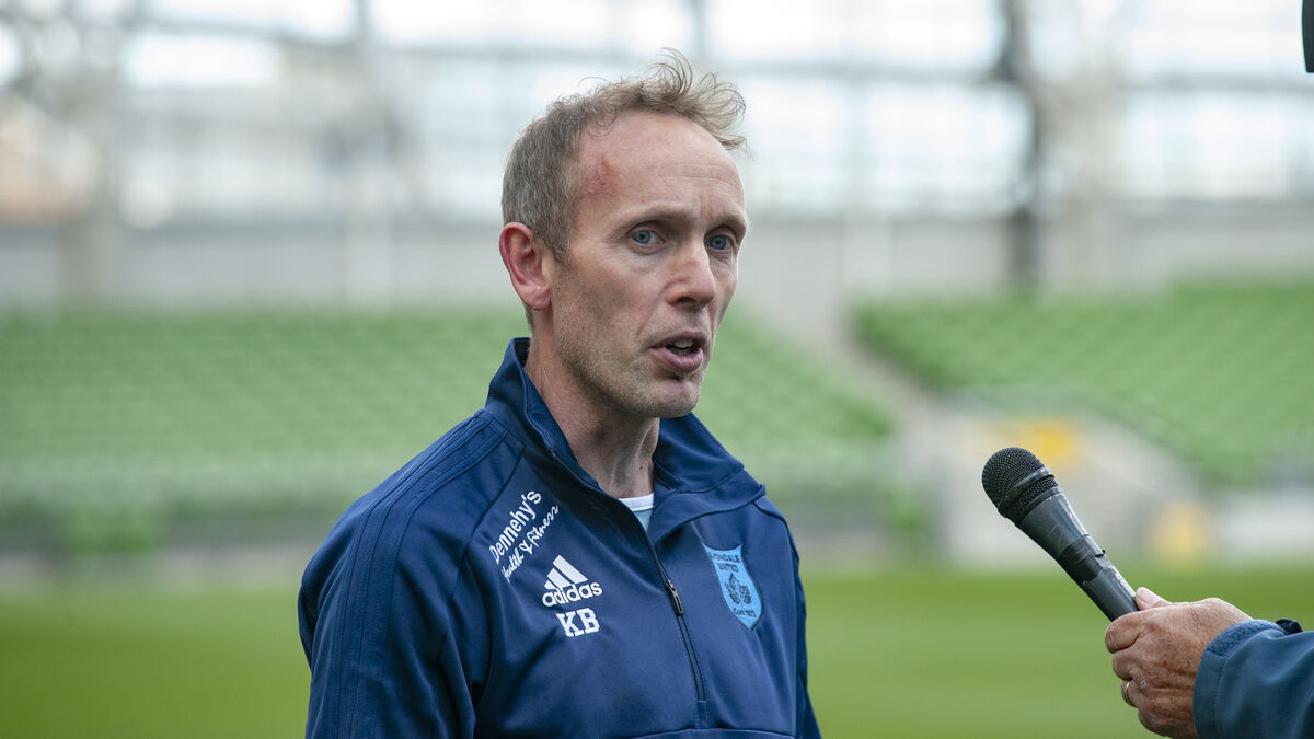 Avondale manager Ken Bruton being interviewed after the FAI Intermediate Cup final.