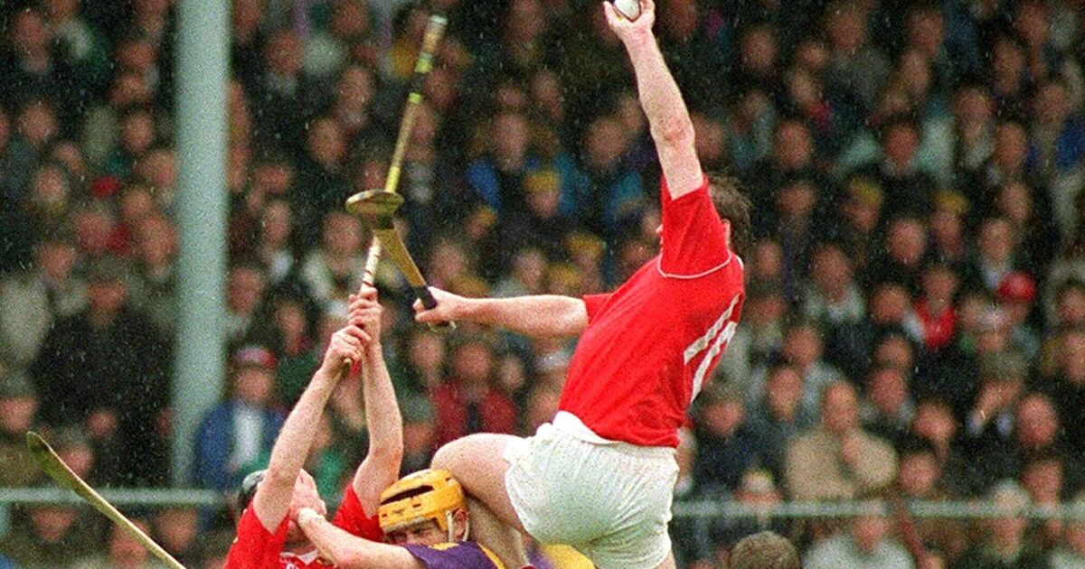 This iconic picture of Teddy McCarthy in action against Wexford in 1993 is being used for the statue in his honour. Picture: Des Barry