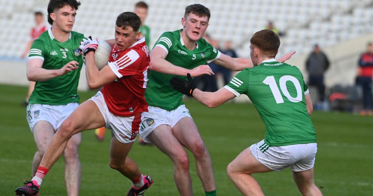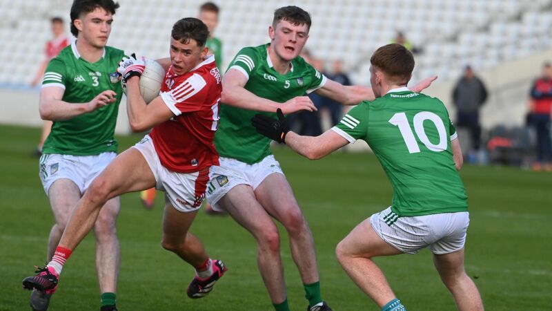 Cork's Hugh O'Connor breaks between Limerick's Frank Corcoran, Jack McCarthy and Aaron Neville during the EirGrid Munster U20 FC semi-final at Pairc Ui Chaoimh in 2023. Picture: Eddie O'Hare