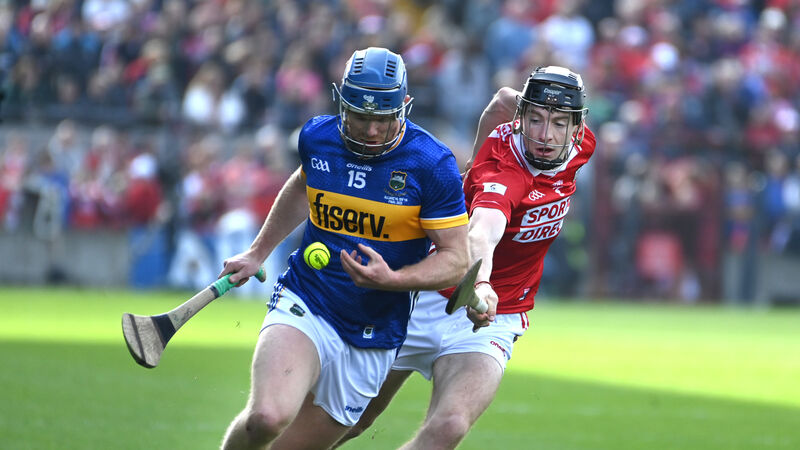 Cork's Eoin Downey knocks the sliotar from Tipperary's Jason Forde. Picture: Eddie O'Hare
