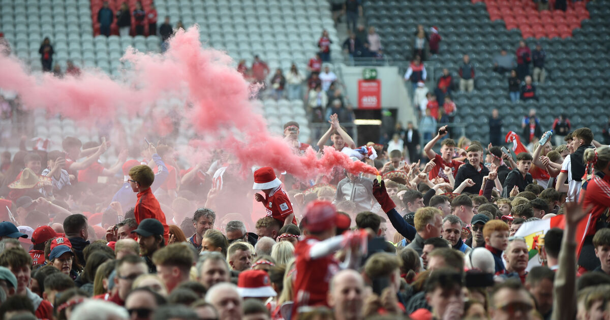 Cork fans celebrate after defeating Tipperary. Picture: Eddie O'Hare