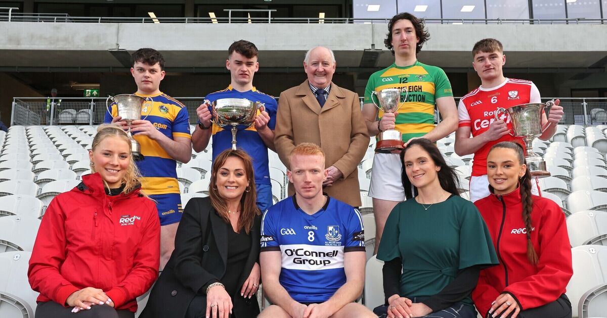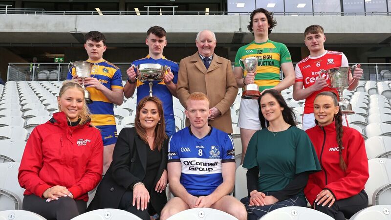 Pictured at the launch of the 2025 Red FM Hurling League were: front row, RedFM Red patroller Sheena Buckley, RedFM sales director Gráinne Murnane, Cian Darcy (Sarsfields), Cork GAA commercial director Sinéad O'Keeffe, RedFM Red patroller Aimee Wills; back: Cork County Board chairperson Pat Horgan, Liam O'Shea (Lisgoold), Rhys McCarthy (Carrigaline), Paul Geary (Ballymartle) and Seán Desmond (Watergrasshill). Picture: Jim Coughlan
