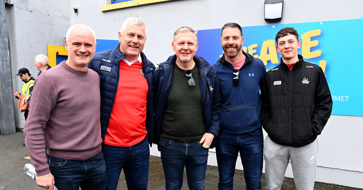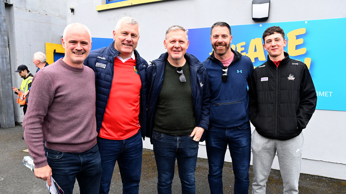 Cork fans and former players Seanie McGrath, Diarmuid O'Sullivan, Ronan Curran with Declan O'Sullivan, physio and his son Max, in Ennis. Picture: Eddie O'Hare