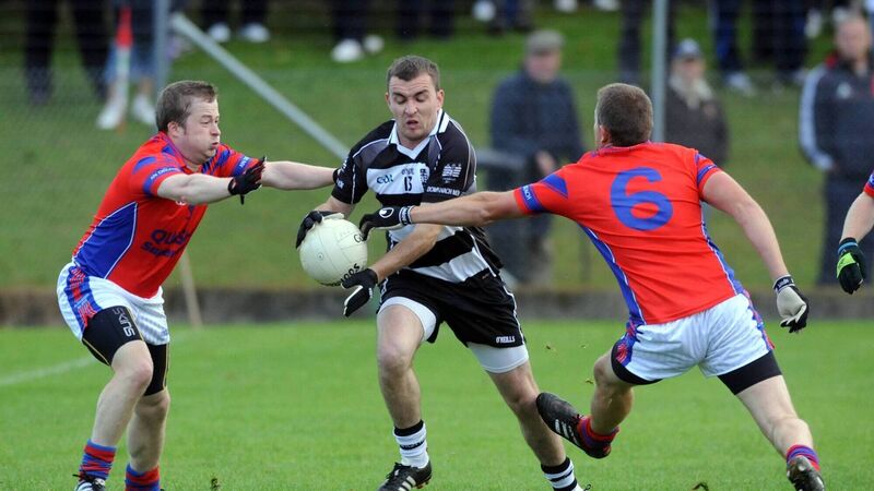 Donoughmore's Aidan O'Shea is tackled by Dripsey's Pat O'Riordan and Daniel Buckley during the Ross Oil Muskerry JAFC final at Coachford in 2011. Picture: Eddie O'Hare