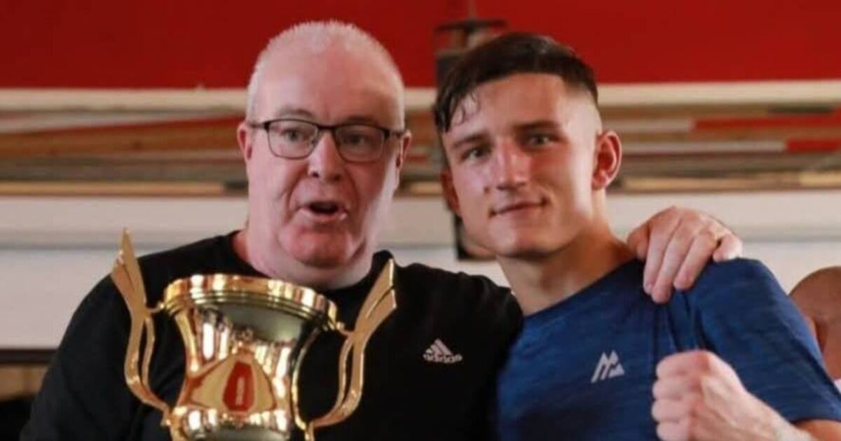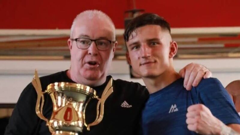 Coach John Morrisey with his boxer Kuba Pielesz, who was presented with the best boxer gold cup at the De Coursey tournament in Bandon