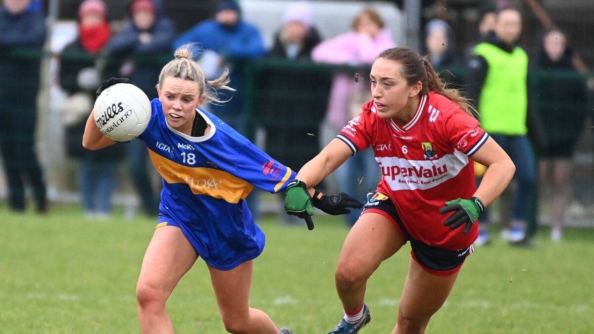 Tipperary's Ava Ryan is tackled by Cork's Sarah Leahy. Picture: Eddie O'Hare