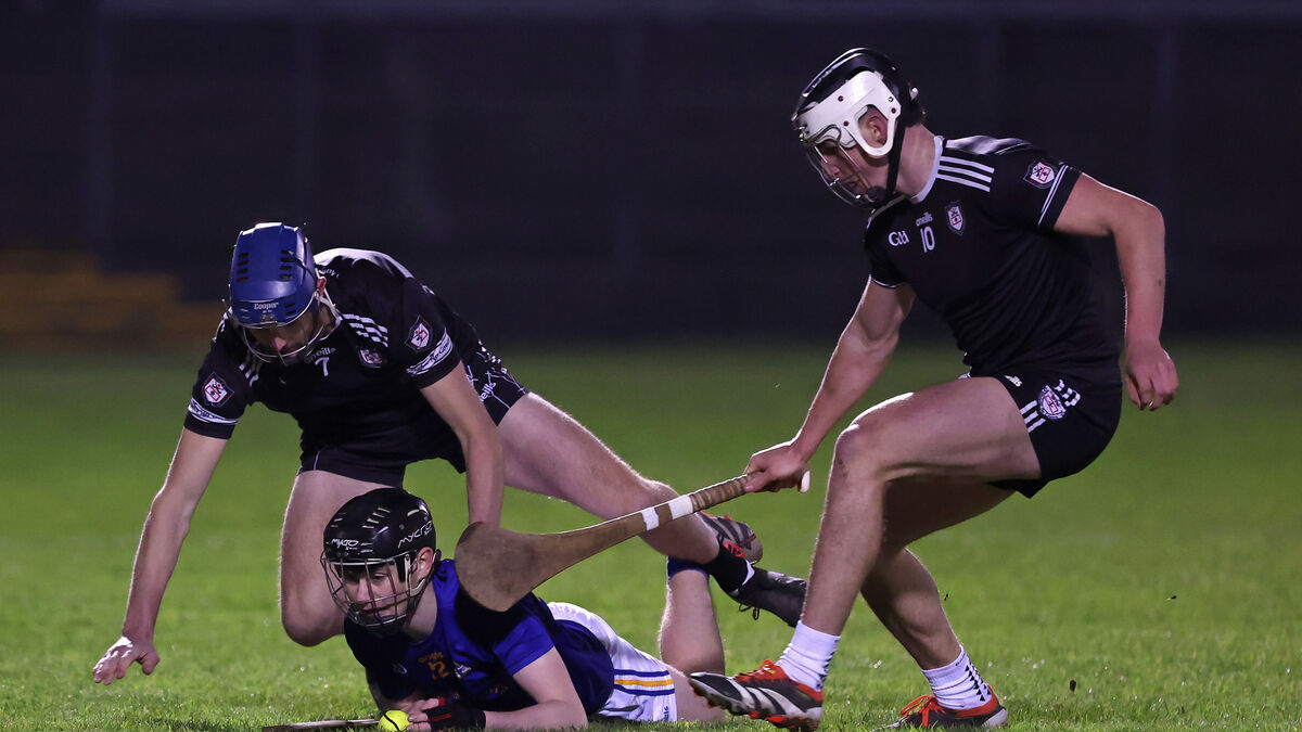Rory O'Sullivan, St Finbarr's, is tackled by Evan McCarthy and Darragh McCarthy of Midleton during the U21A Hurling Championship Final at Pairc Ui Rinn last year. Picture: Jim Coughlan.
