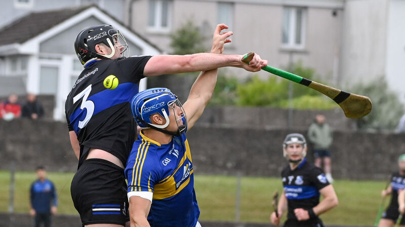 Sarsfields' Kieran Walsh battles with Carrigtwohill's Sean Walsh, Division 1 HL top scorer, last weekend. Picture: David Keane.