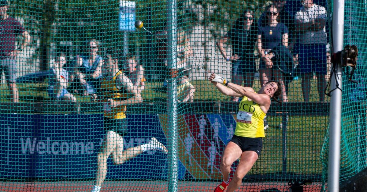 Bandon native Nicola Tuthill was the winner in the Women’s Hammer with a throw of 70.65 metres, over two metres clear of Norwegian Llano Beatrice in second, and Finn Koskinen Suvi in third.