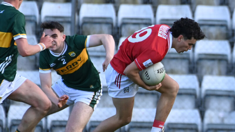 Cork minor Joe Miskella gets away from Kerry's Ronan Sheridan at Páirc Uí Rinn this season. Picture: Eddie O'Hare
