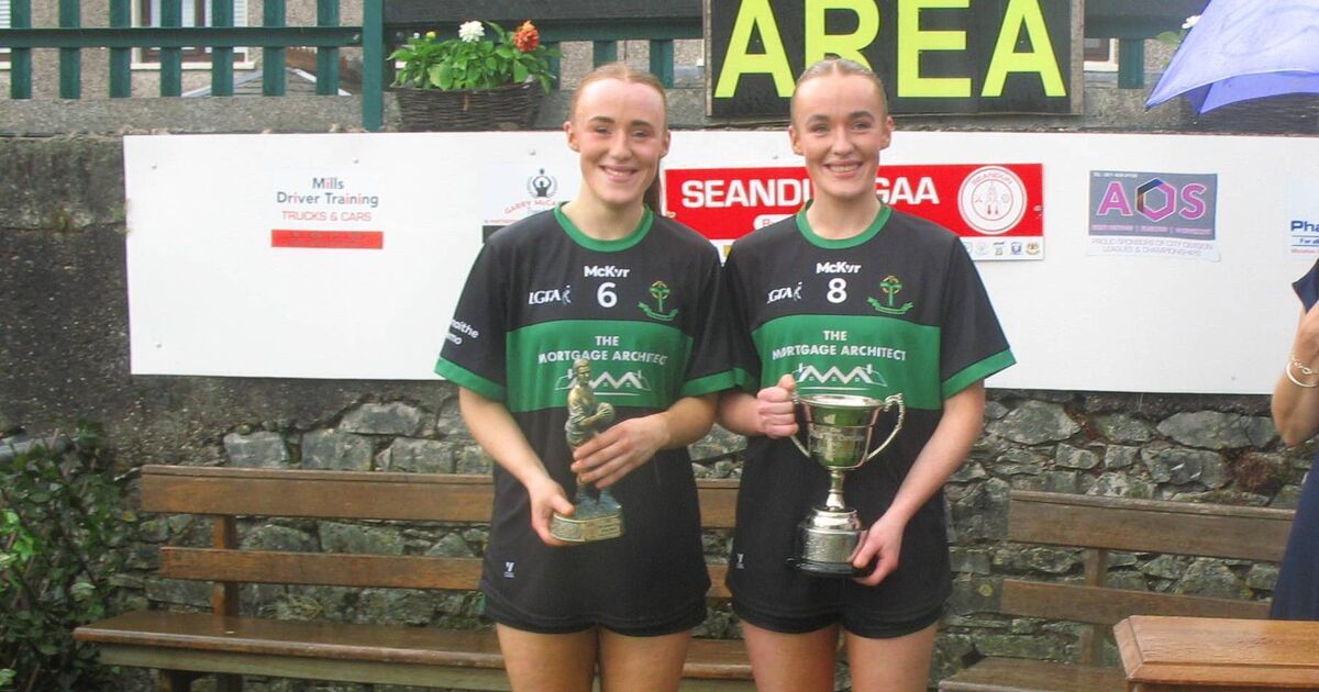 Nemo Rangers' Player of the Match Cliona McTaggart and captain Aoife McTaggart after beating Douglas in the Eilís MacCurtain Cup final at Ballinlough.