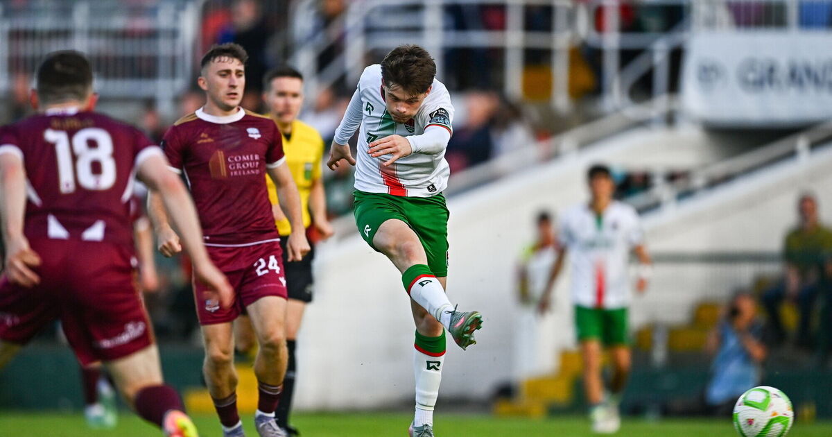 Galway, as error-strewn as they’ve been in recent weeks, looked threatening. In the 22nd minute, Edward McCarthy teed up Robert Burns for a close-range attempt but Rory Feely made a commanding block. A minute later, Jeannot Esua’s cross in found Stephen Walsh but Conor Brann made a big save to turn it around for a corner.