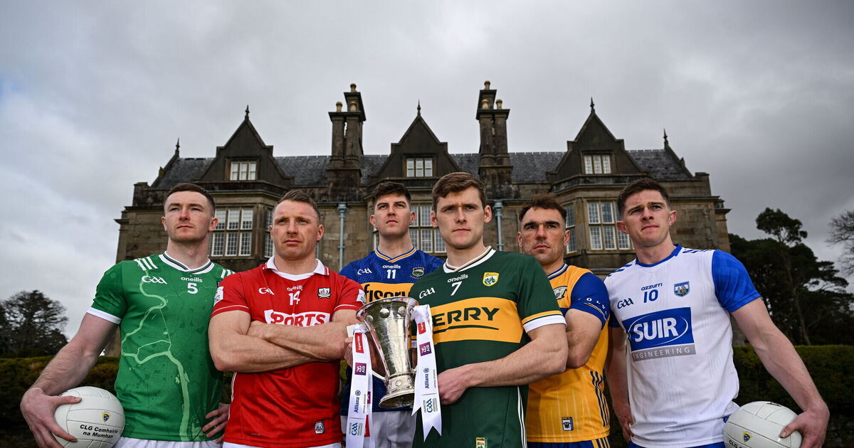 Limerick vice-captain Barry Coleman, Cork captain Brian Hurley, Tipperary captain Steven O’Brien, Kerry captain Gavin White, Alan Sweeney of Clare and Waterford captain Conor Murray at the launch of the Munster GAA Senior Hurling and Football Championship 2025 at Muckross House. Picture: Brendan Moran/Sportsfile