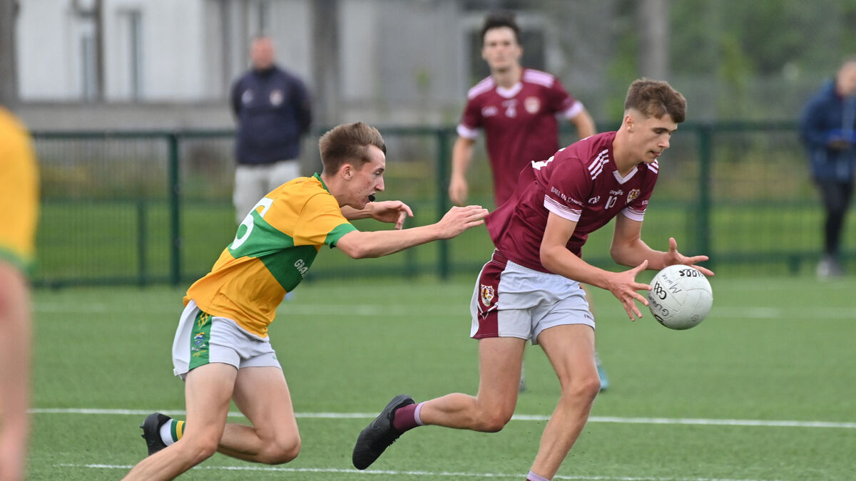 Andy Cuthbert, Bishopstown, getting past Cuan McMahon, Glanmire, in their Rebel Óg P1 MFC match at Bishopstown. Picture: Dan Linehan