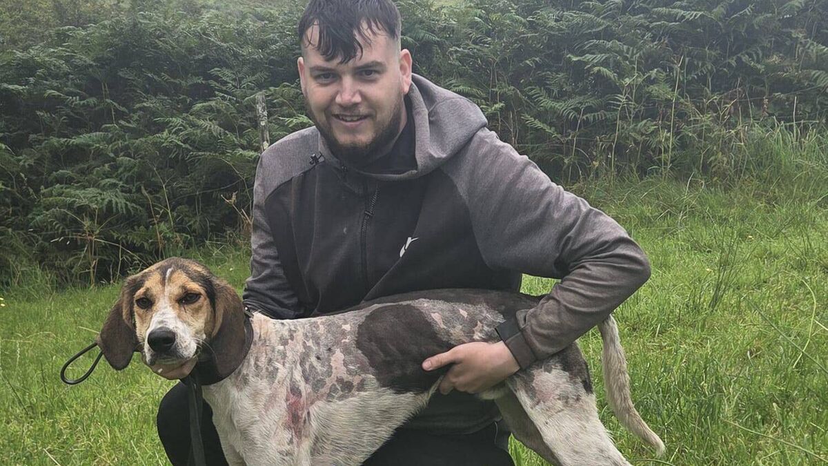 Jamie Wyse of Griffin United with Jamie's Lad, winner of the Munster Puppy championship draghunt at Scartaglin