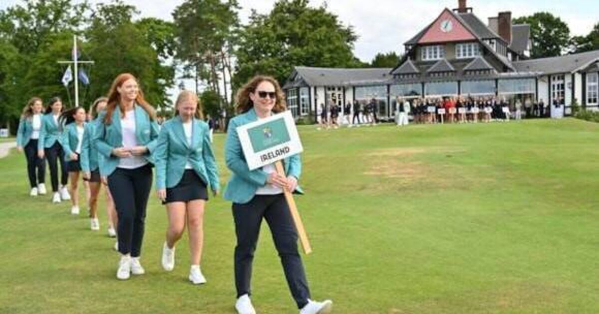 LEADING THE WAY: Gillian O'Leary leads Ireland in the parade at the European Amateur Team Championships earlier this summer. Pic: Tomas Stevens / FFGolf.