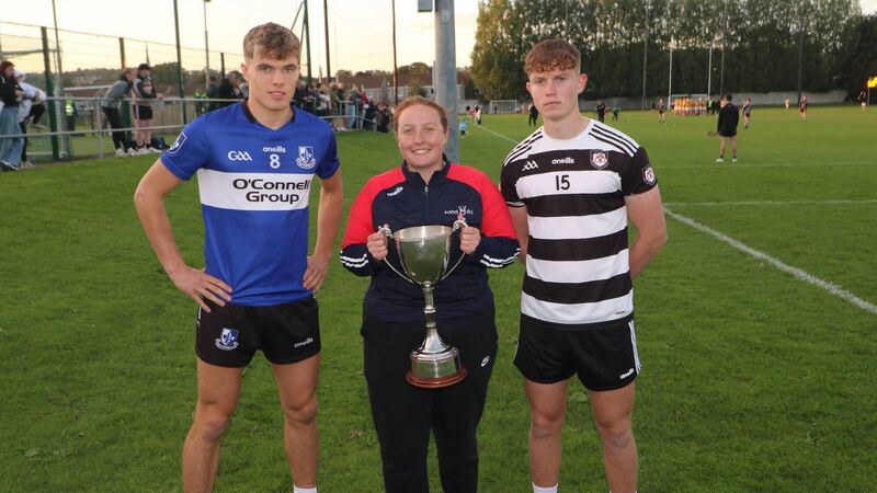 Sarsfields Harry Cogan, and Midleton's, Peter Barrett, with Amy Allen, PRO Rebel Óg, at the launch of the Premier 1 MHC final. Picture: Steven Lynch