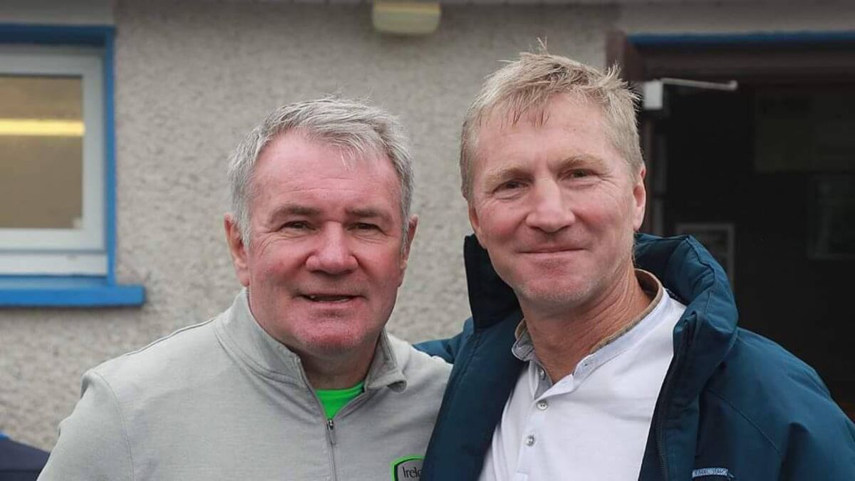 Ger Spillane with former Irish international Ray Houghton at the Festival of Football at Ballinhassig soccer club.