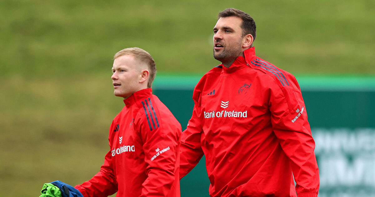 Ethan Coughlan and Tadhg Beirne at Munster training this week. Picture: INPHO/Tom O’Hanlon
