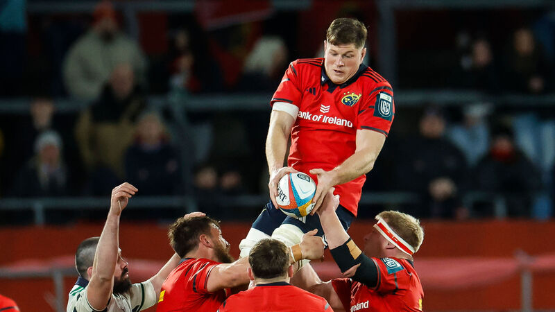 Munster's Jack O'Donoghue catches the ball from a lineout against Connacht. Picture: INPHO/James Crombie