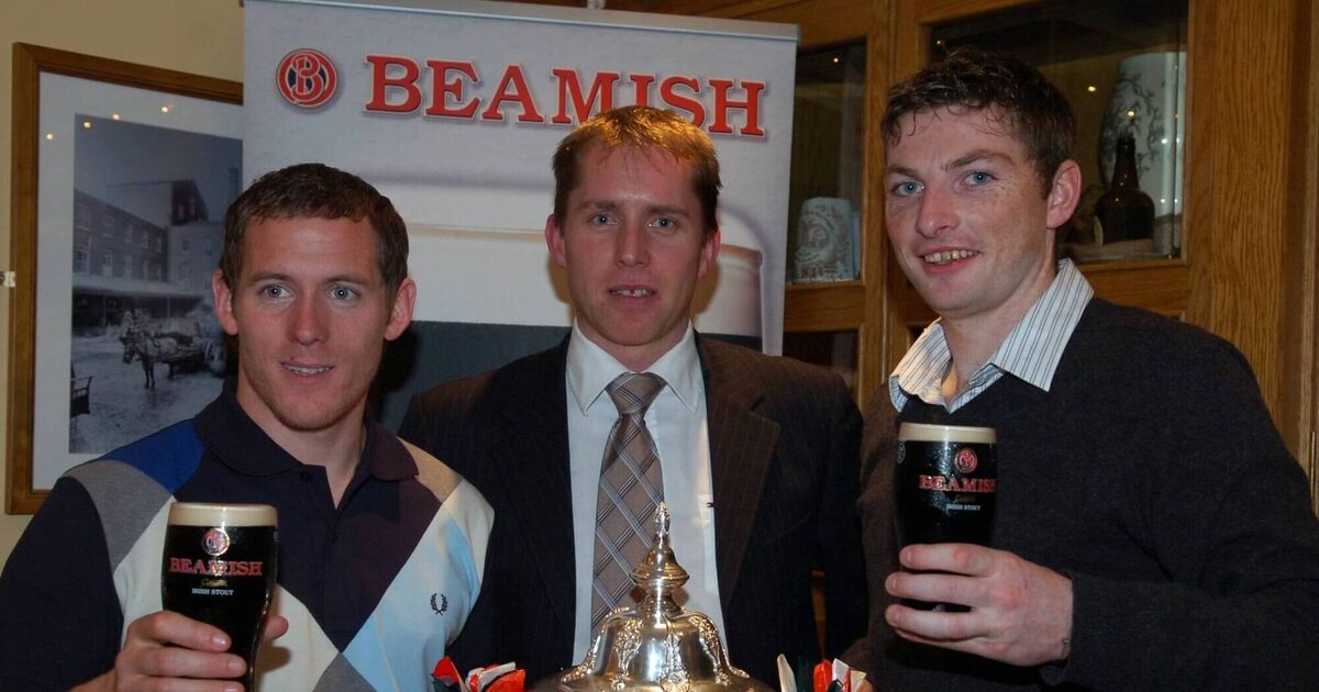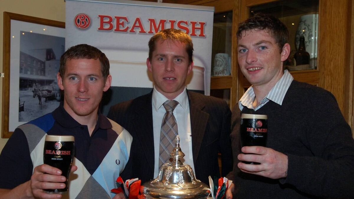 Cork City players Joe Gamble and Denis Behan with Beamish brand manager Tomas Brady at the victory luncheon hosted by Beamish and Crawford after winning the 2007 FAI Cup final. Picture: Eddie O'Hare