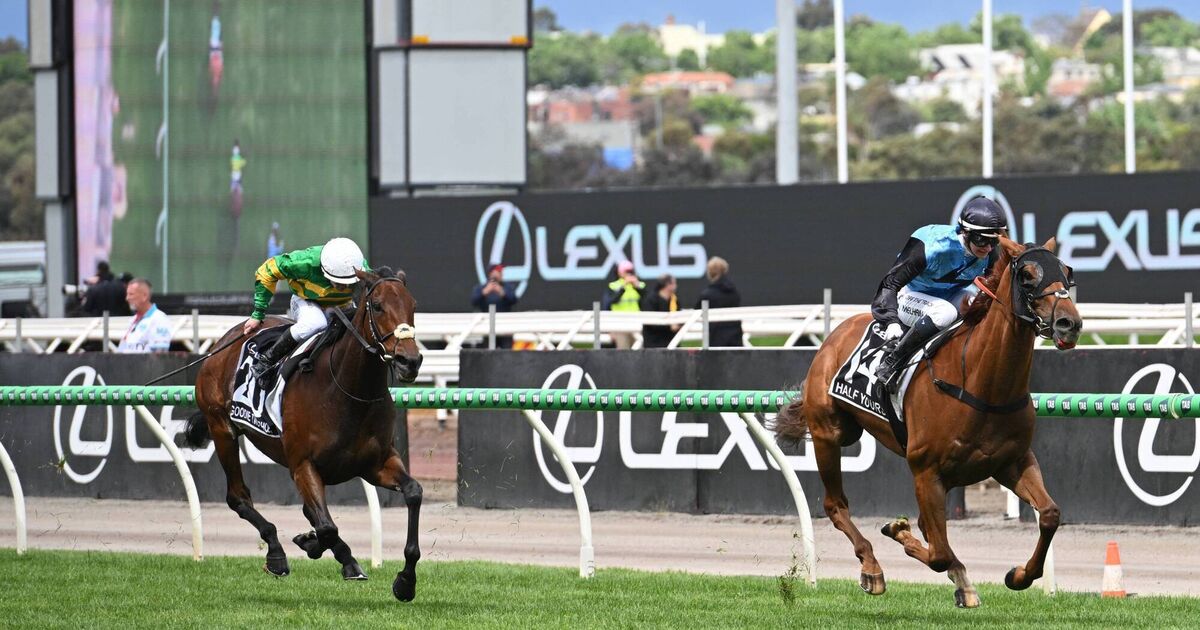 Jamie Melham riding Half Yours defeats Wayne Lordan riding Goodie Two Shoes Race 7, the Lexus Melbourne Cup during Melbourne Cup Day at Flemington Racecourse on November 04, 2025 in Melbourne, Australia. (Photo by Vince Caligiuri/Getty Images)