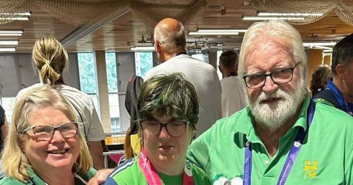Julie Dwyer and her husband John with their daughter Nicola that represented Ireland at swimming at the Special Olympics World Games in Berlin in 2023