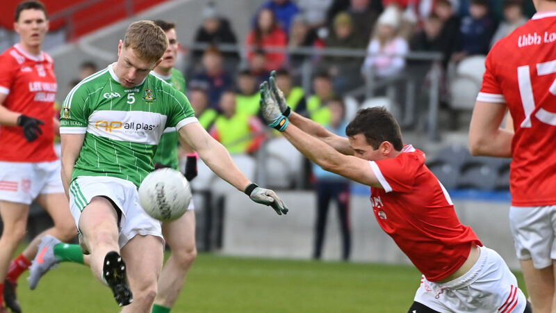 Aghabullogue's Paul Ring shoots from Uibh Laoire's Seán O'Leary. Picture: Eddie O'Hare