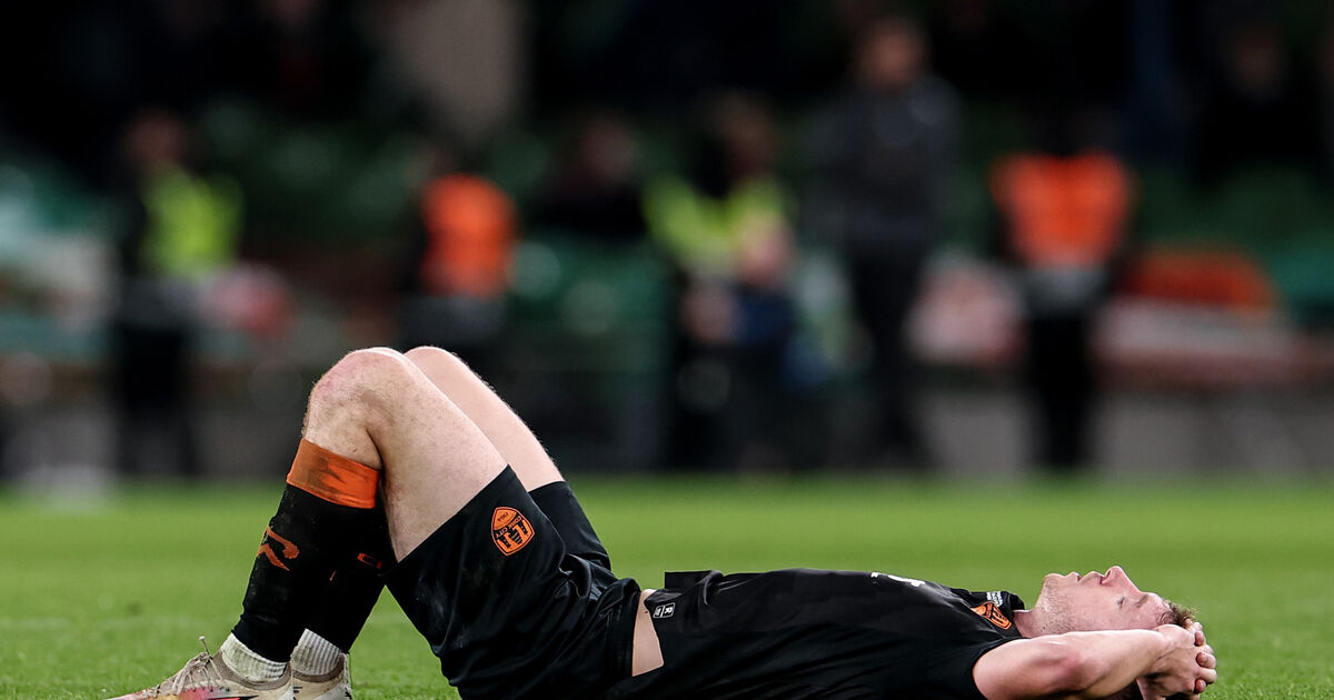 Cork City's Rory Feely dejected after the final whistle in the FAI Cup final. Picture: INPHO/Ben Brady
