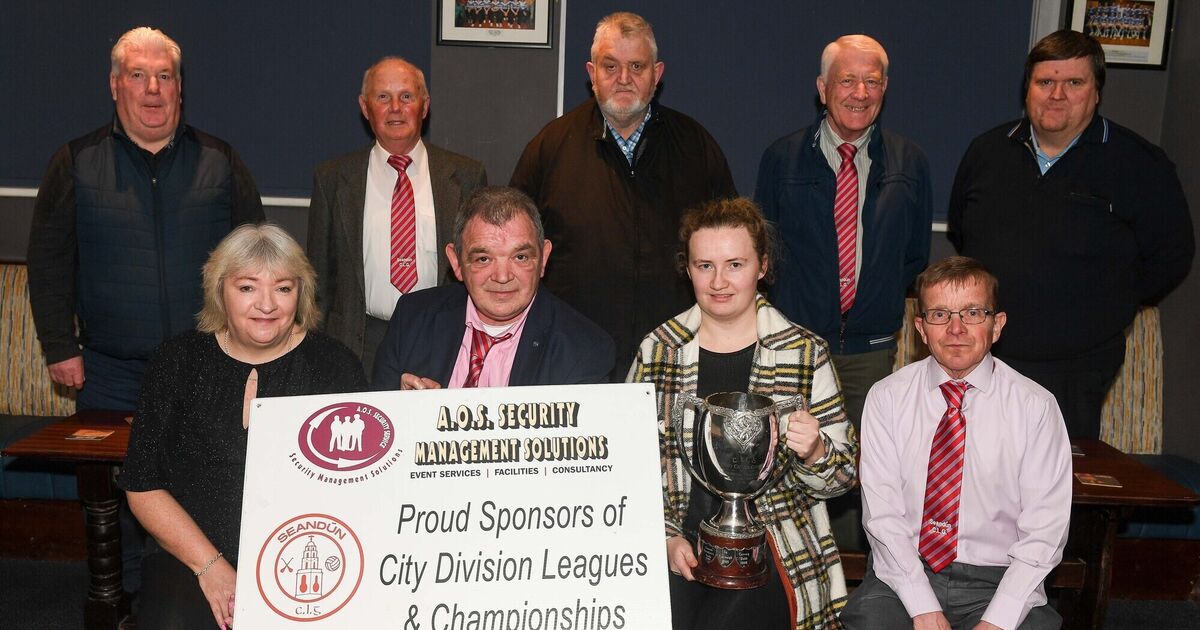 Seandún board officers attending the AOS Security Seandun Junior championship draws, at Brian Dillon’s GAA Club. Included are back row from left, Eddie Murphy, secretary, Sean McCarthy, vice-chairman, Bernard Corcoran, referees secretary, Derry Collins, vice-president and Derek Connolly, assistant secretary. Front row from left, Tracy Sheehan, assistant treasurer, Mick Buckley, chairman, Megan Farr, pro and Tommy Martin, treasurer.