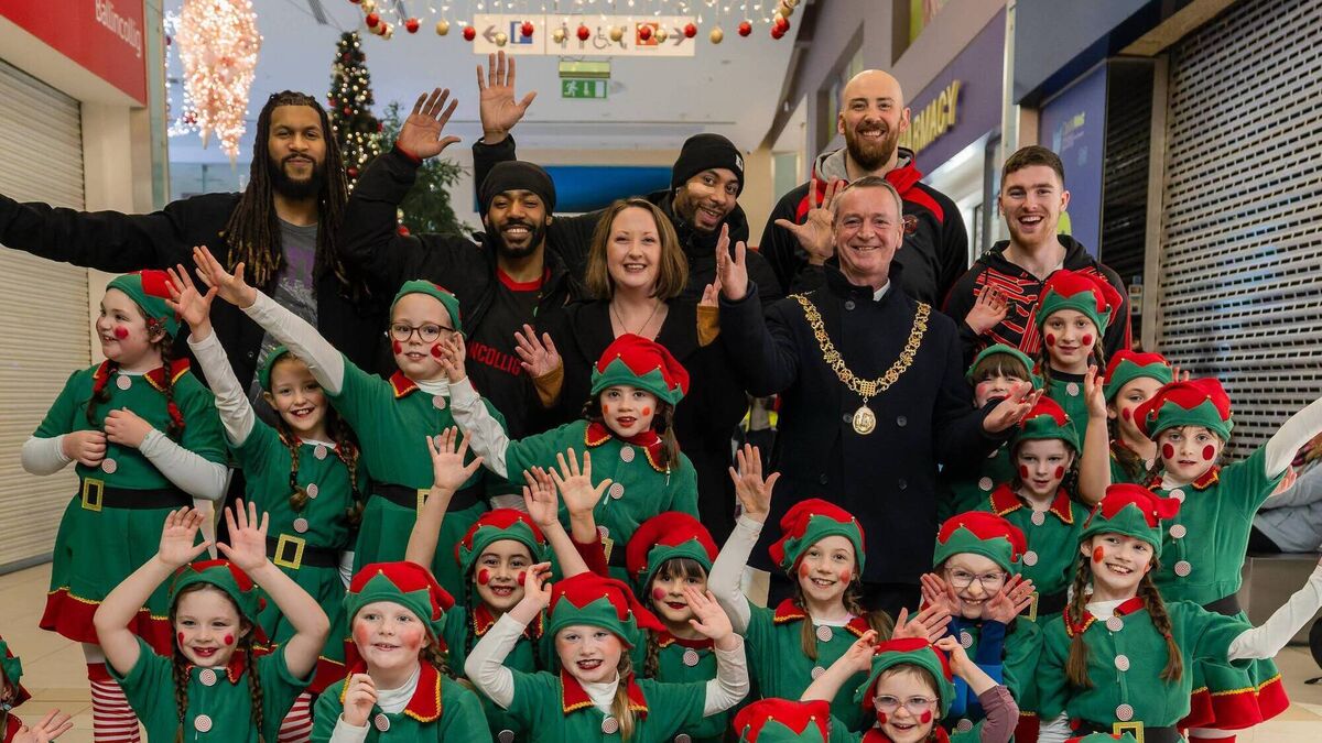 Ballincollig Basketball Club rowed in behind the Christmas lights event in the Village ahead of their National Cup quarter-final, with Lord Mayor Cllr Fergal Dennehy. Picture: Jonathon Ulrich