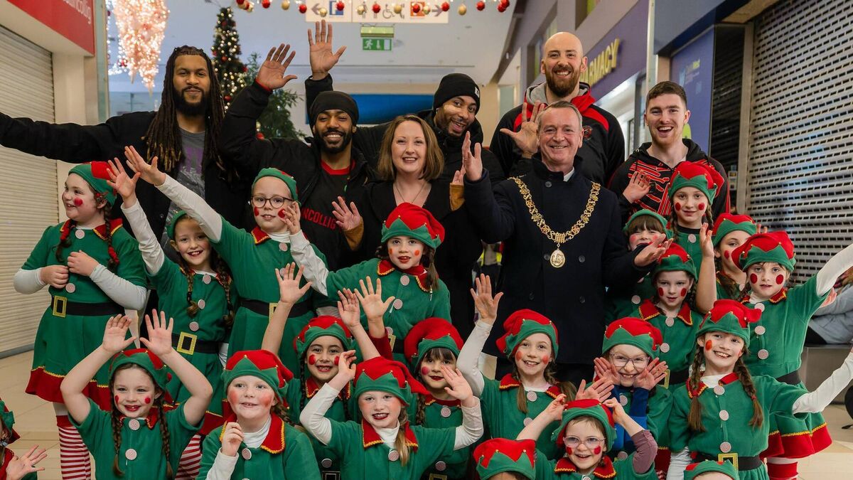 Ballincollig Basketball Club rowed in behind the Christmas lights event in the Village ahead of their National Cup quarter-final, with Lord Mayor Cllr Fergal Dennehy. Picture: Darren Lane