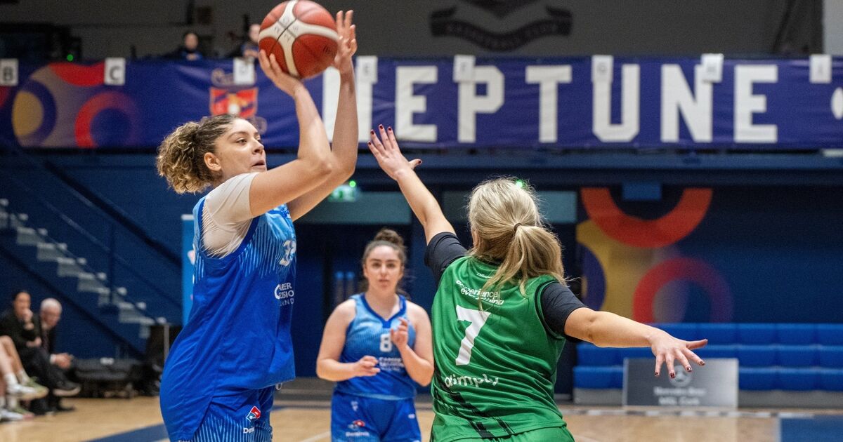 The home side raced into a 28-17 lead with baskets by O’Sullivan and Cumber, however, a bucket and a foul shot by Jessica Fressle reduced the deficit 28-20 after three minutes of the second period.